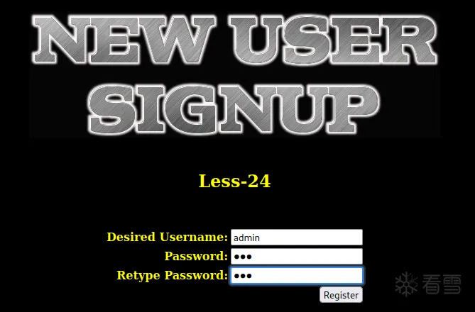 这里就用SQLi-Labs靶场的第24关来进行举例二次注入