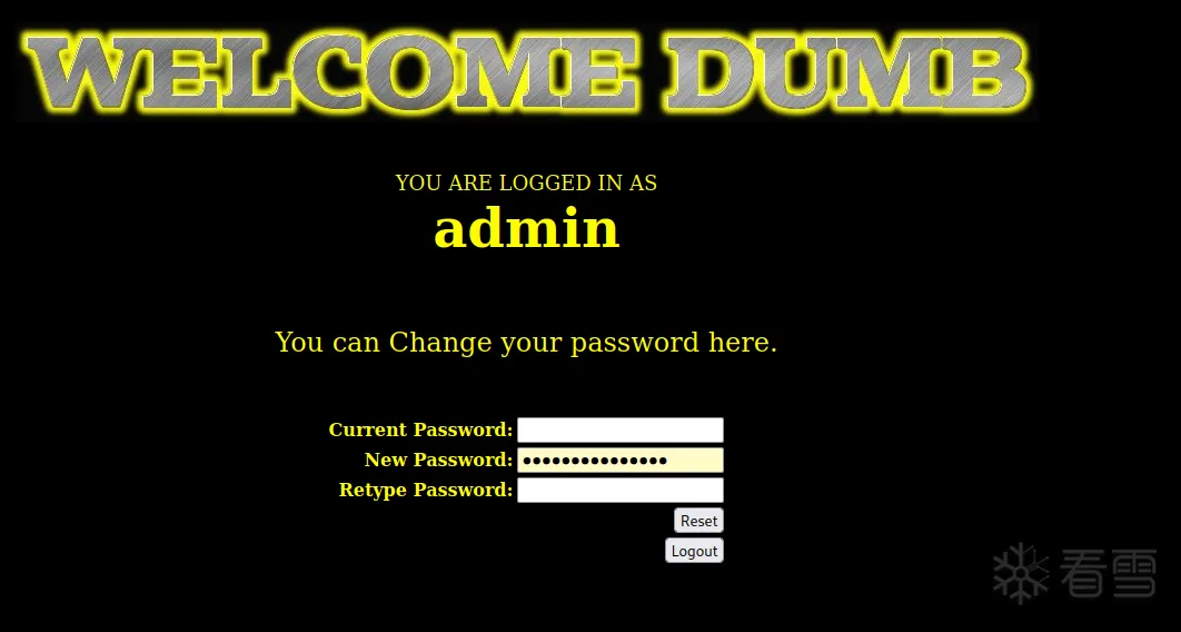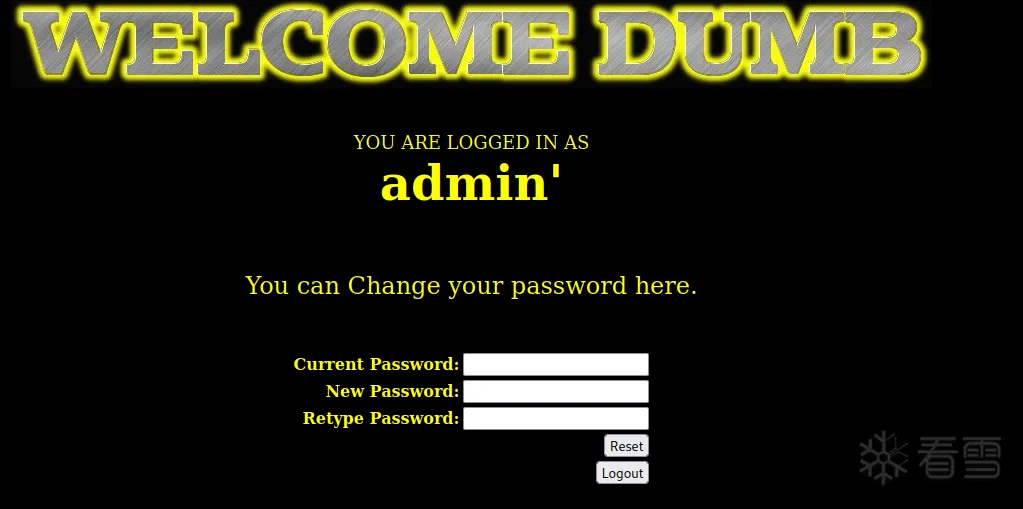 登入后可以看到账号是admin‘,然后相关操作是修改密码